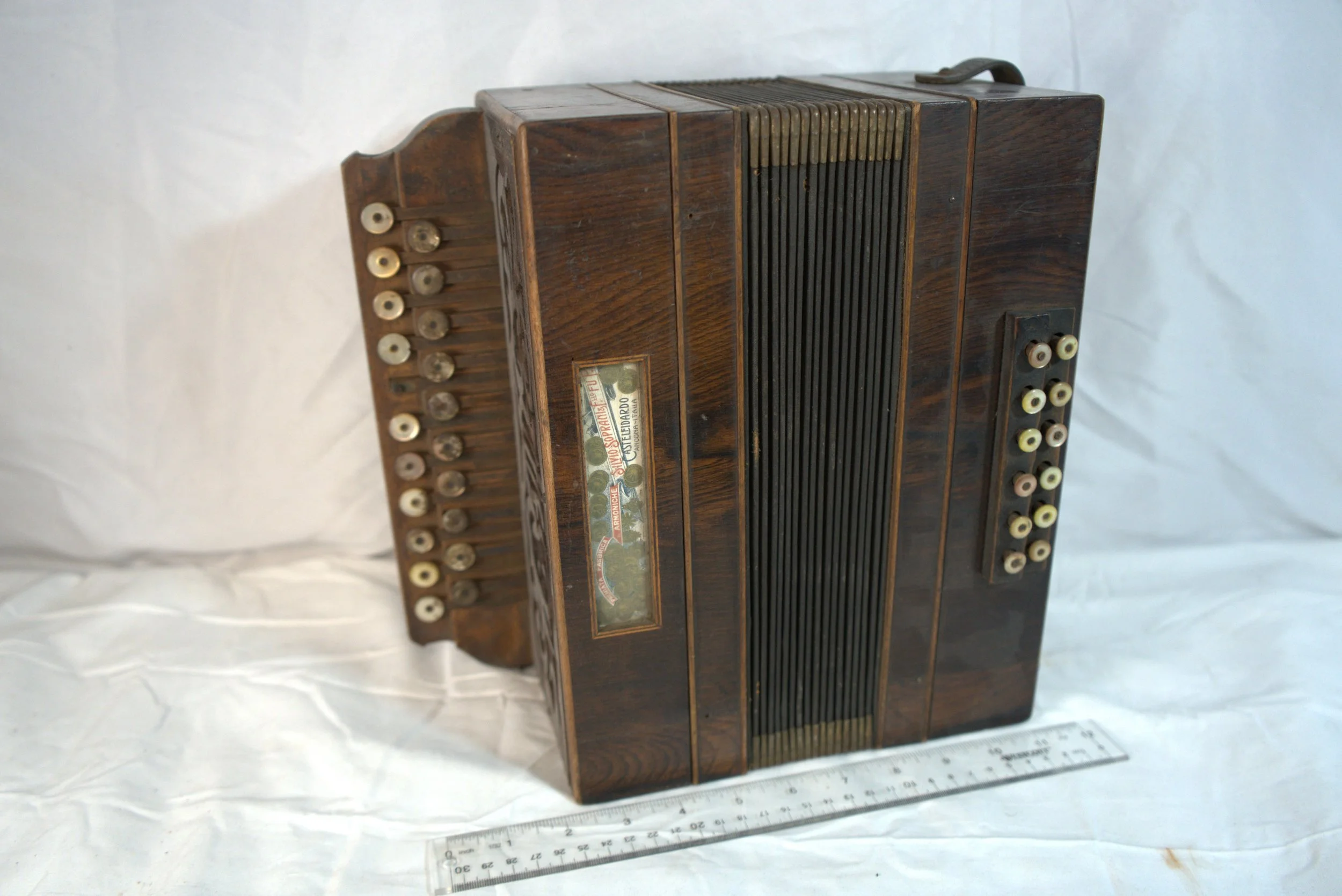 Silvio Soprani accordion Label reads “Premiata Fabrica Armoniche Silvio Soprani & F.LLO FU P. Castelfidardo Ancona Italia”