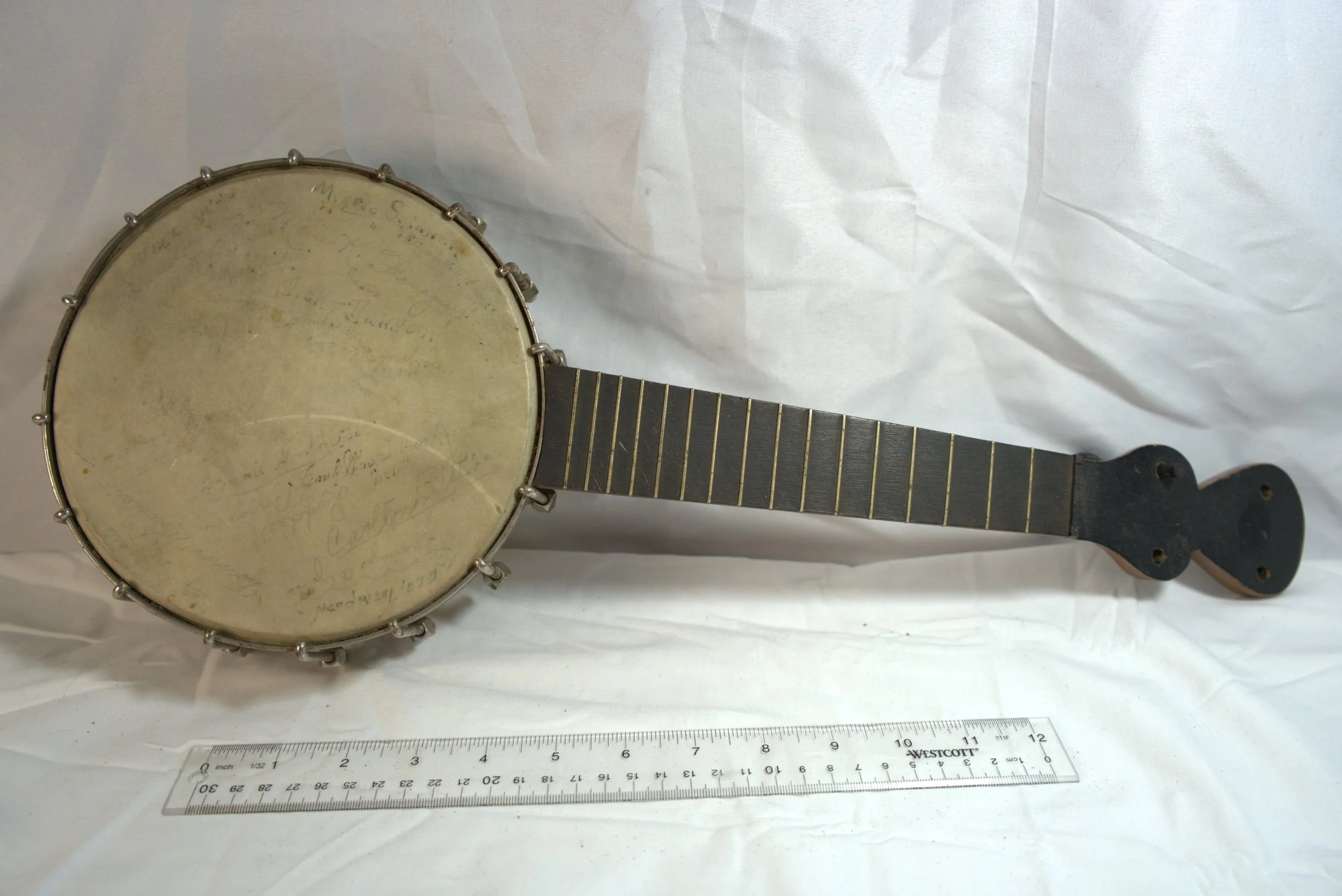 This banjolele has no makers mark but plenty of art and signatures from the late 1920s to early 1930s