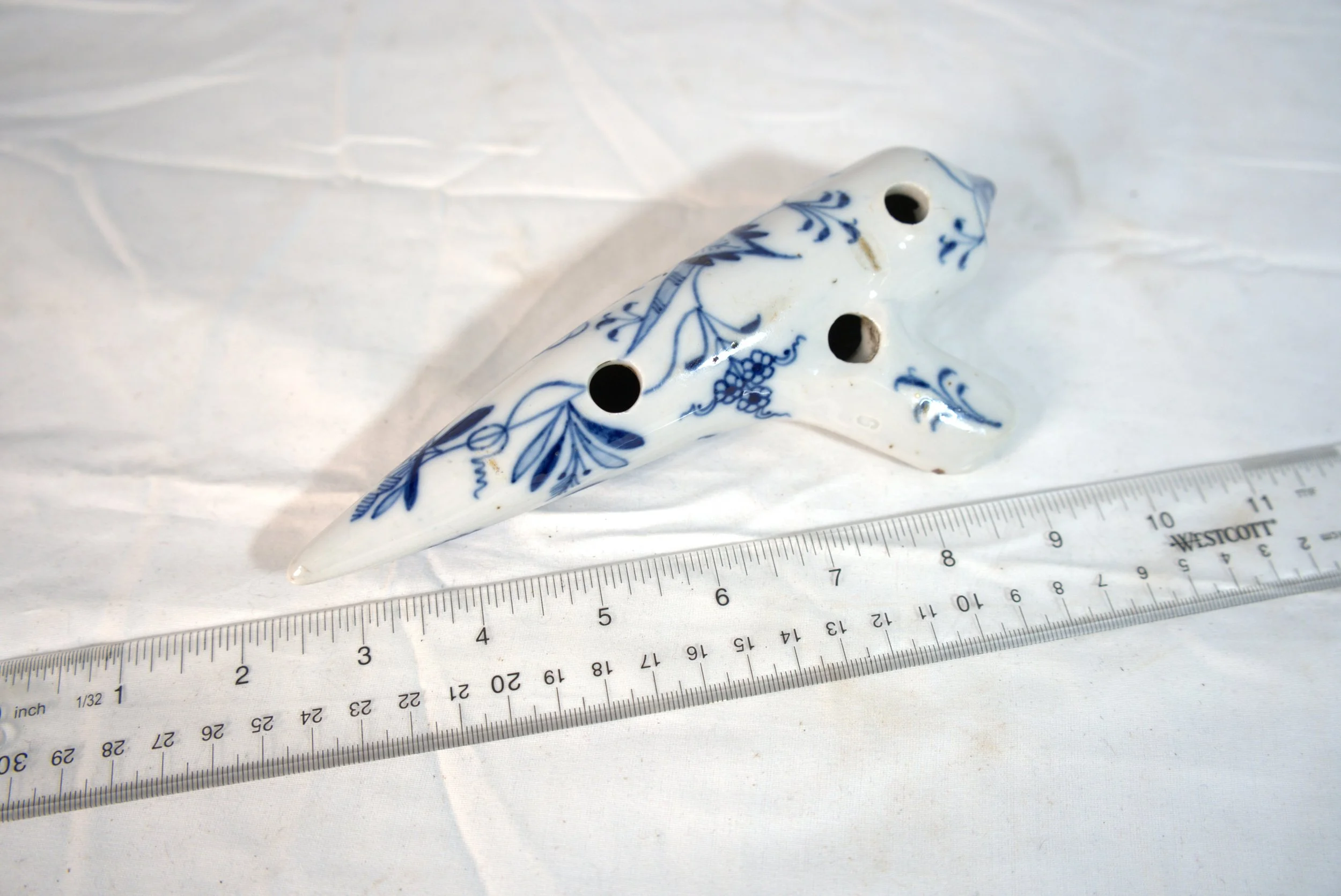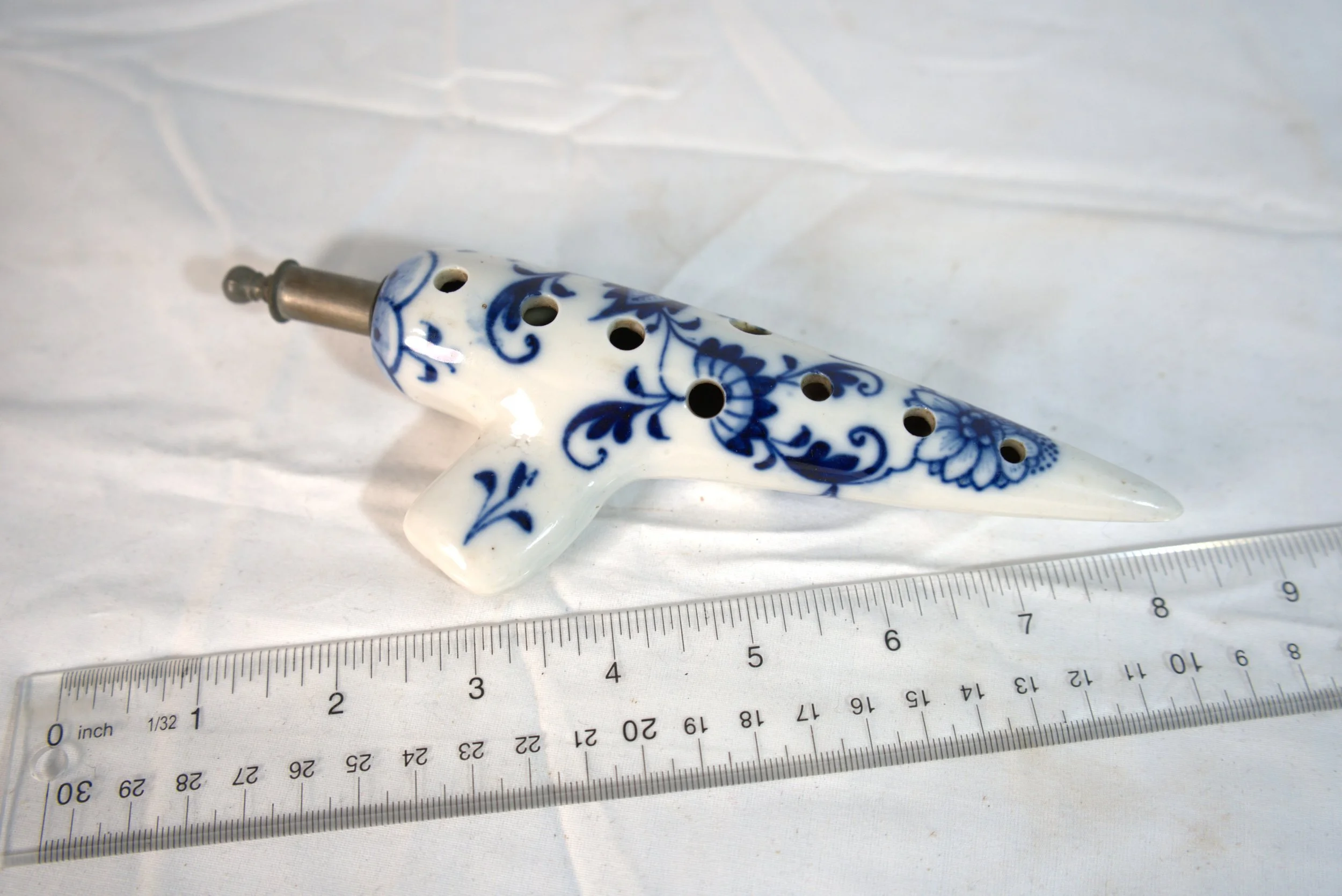 These first four ocarinas were made by various companies for Meissen and they used the famous blue onion pattern. The first one has a tuning slide.